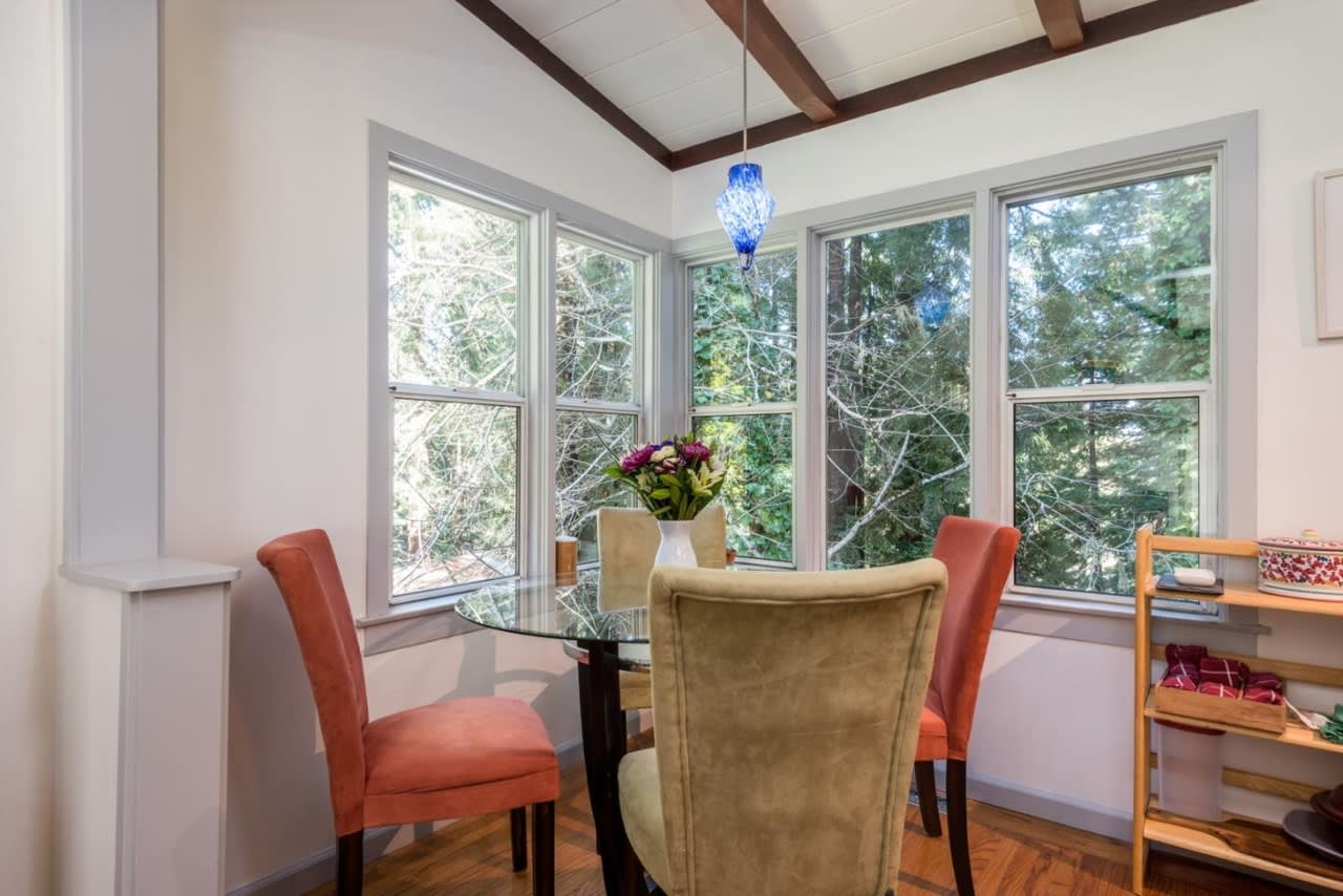 Scenic Tahoe-like setting! Surrounded by soaring Redwood Trees this darling 2 bedroom, 2 bath home is a mountain paradise yet close to local conveniences and the famed, Alice's restaurant. Skylonda Dr is just off Skyline Blvd, which runs along the crest of the Santa Cruz Mountain range. Naturally landscaped and private, completely fenced yard, including front patio. Enter into a spacious living room with high beamed ceilings and hardwood floors. Gourmet, eat in kitchen with stunning Redwood views. Master bedroom on main level leads out to spacious deck and backyard views, perfect for morning Yoga, coffee and entertaining. Additional room on main level makes a great office. Stairs to lower level lead to second bedroom and bath and laundry room. Access to backyard from both levels of the home. 1 car detached garage with storage and additional storage area. Do not miss this chance to own a charming home in Woodside!